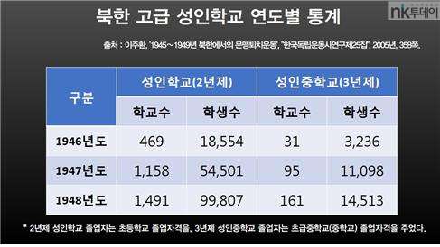 불과 3년 전인 1946년 2월 성인인구의 절반이 문맹자였던 것에 비하면 괄목한 성과를 이룬 것이다.