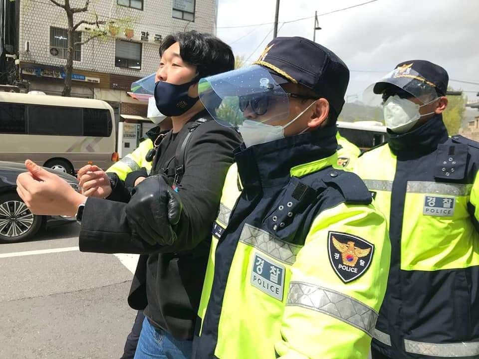 서울청년진보당 대학생위원회 기자회견 중 경찰에게 끌려나가는 모습