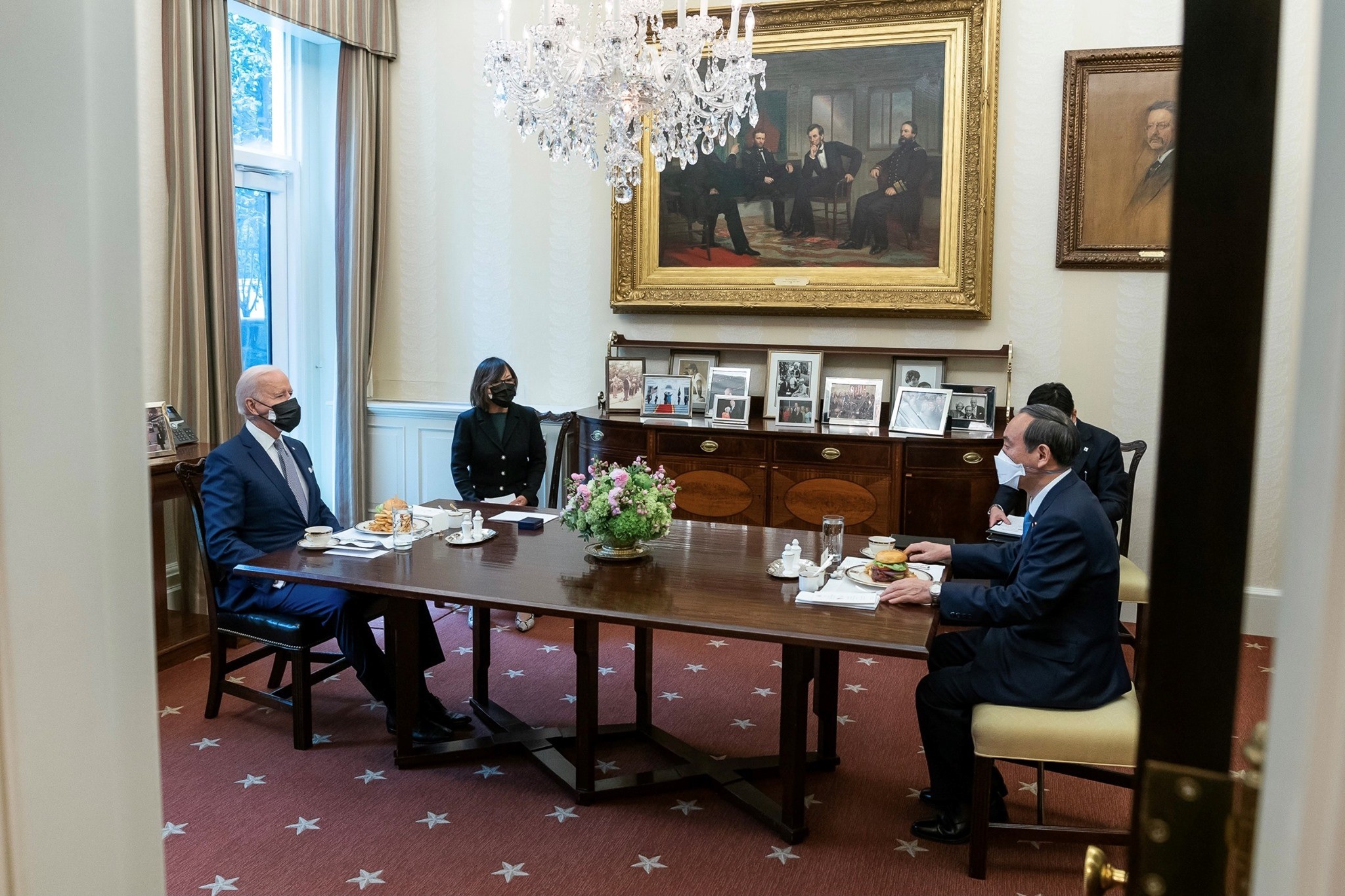 이 오찬은 미일정상회담과 비교되기도 했다. 바이든 대통령이 스가 요시히데 일본 총리와 오찬을 할 땐 2m 정도 되는 긴 탁자에 앉아 멀찍이 떨어져서 오찬을 진행했다. 바이든 대통령은 문재인 대통령을 만날 땐 마스크를 벗고 만났지만 스가 총리를 만날 땐 마스크 두 장을 겹쳐서 썼다.