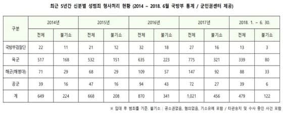 그리고 성범죄가 끊이지 않는 이유는 두 번째로 군사법원의 솜방망이 처벌도 있다.