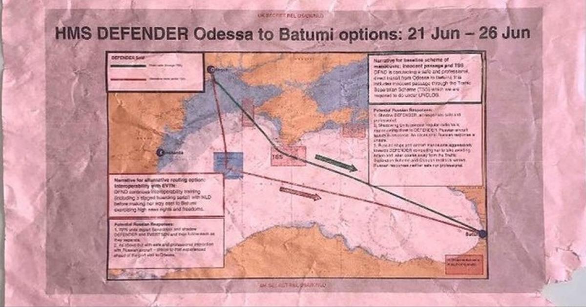 그 뒤 영국에서 수상한 일이 벌어졌다. 6월 27일, BBC가 어떤 영국인이 버스정류장에 떨어져 있는 군사기밀문서를 주워 제보했다면서 그 기밀문서의 내용을 보도한 것이다. 그 기밀문서엔 영국 구축함 HMS 디팬더가 크림반도 해역을 통과하면 러시아가 어떻게 반응할지 예측한 내용이 담겨 있었다고 한다. 영국 국방부는 “한 직원이 문서를 분실”했다며 “민감한 방위 문서를 대중이 찾은 사건을 조사 중”이라고 말해 내부 문서가 맞는다고 시인했다.