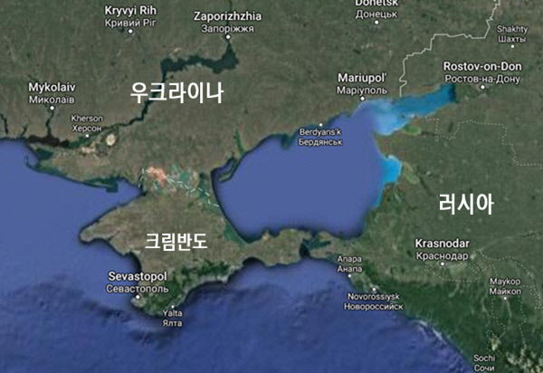 크림반도 주변을 보여주는 지도. 우크라이나 남쪽, 흑해로 돌출된 크림반도는 유럽과 중동으로 뻗어나갈 수 있는 지정학적 요충지다.