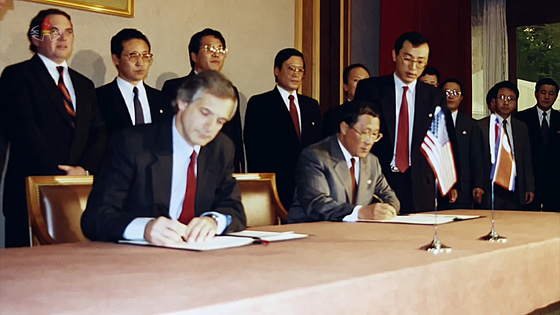 시간을 거슬러 올라가 보자. 1993년 6월 2일 북한과 미국은 핵문제로 고위급회담을 열었다. 조선중앙통신에 논평을 싣기도 했던 재일동포 김명철은 저서 『김정일 한의 핵전략』에서 이 고위급회담 일화를 공개했다.