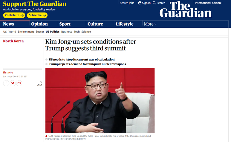 어쨌든 미국은 이런 수단들을 통해 북한의 최고인민회의에 정책적 개입을 하려고 했다. 그 개입에는 북한이 ‘새로운 길’로 가지 말았으면 하는 절박함이 있었다. 그리고 제재해제를 위해서는 선 비핵화와 개혁개방을 받아들여야 한다는 내용이었다. 물론 후자는 확신성 없는 고장 난 레코드의 반복 같은 것이었고 전자가 핵심이었다. 정세현 전 장관은 앞서 언급한 인터뷰에서 미국이 3차 북미정상회담 개최 가능성을 내비친 것은 북한이 언급한 ‘새로운 길’을 가지 말라는 의미라고 해석했다.