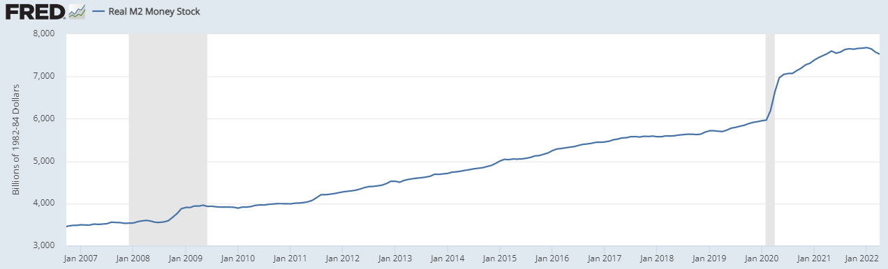 미국은 2008년 금융위기를 극복하기 위해 달러를 대량으로 뿌리는 정책을 폈다. 미국은 이런 돈 뿌리기를 '양적완화'라고 그럴듯하게 포장한다. 그 결과 총 달러 통화량이 2008년 1월 3조 5,000억 달러에서 2022년 1월 7조 7,000억 달러로 늘어났다. 14년 만에 달러 통화량이 2배로 껑충 뛰었다.
