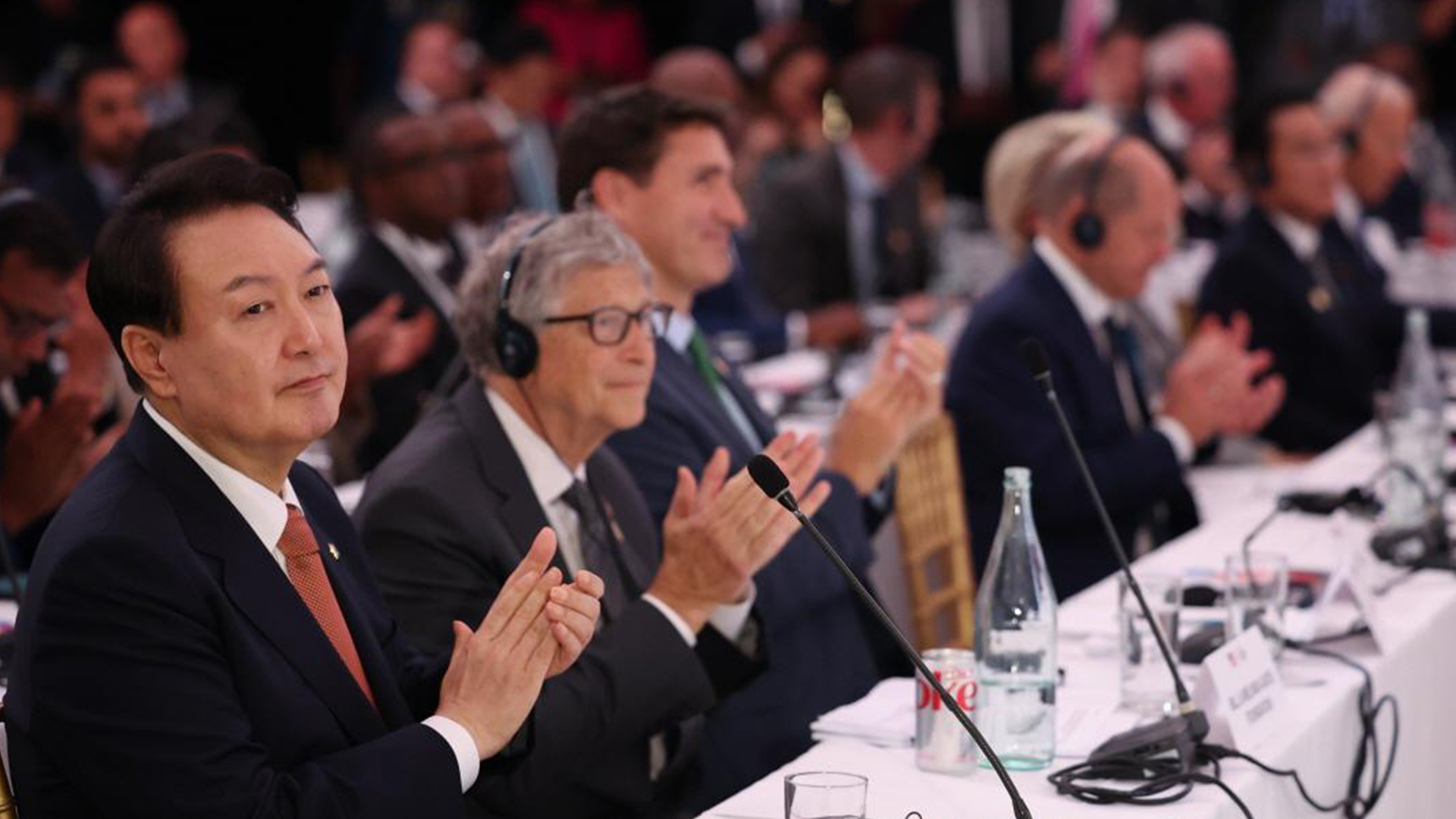카메라는 처음에 행사가 시작되기 전 연설하는 윤 대통령을 비춘다. 그런데 윤 대통령이 연설하는 동안 각국 정상들의 자리에는 아무도 앉아 있지 않았다. 국제사회가 윤 대통령의 연설에 관심을 전혀 주지 않았다는 얘기다.
