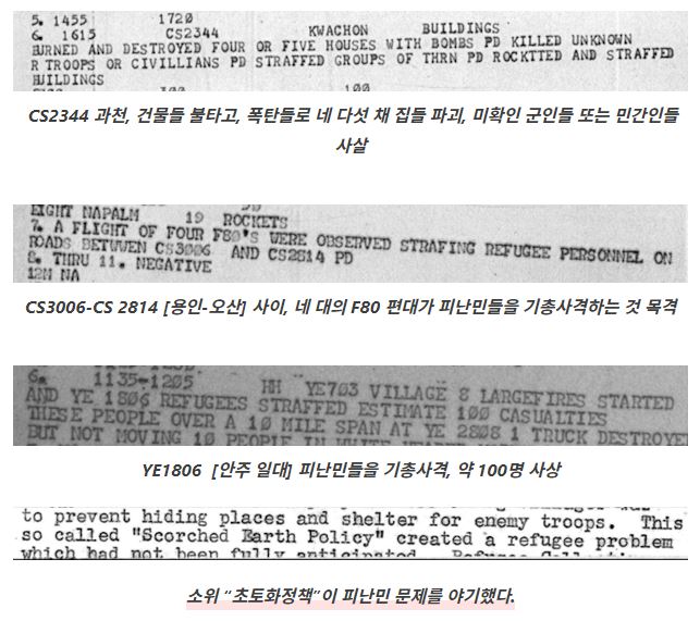 -‘한국전쟁 민간인 폭격에 관한 기밀해제 미군 보고서 에 나오는 내용 중에서.