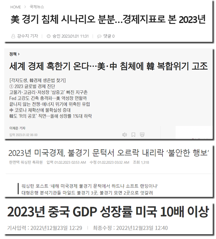 경제 상황도 심상치 않다. 물가 폭등을 잡겠다며 금리를 미친 듯이 올렸는데 그 결과가 어떻게 될지 아무도 장담하지 못하고 있다. 1년 내내 경기 침체에서 좀처럼 벗어나지 못했으며, 전문가들마다 미국 경제 전망이 어둡다고 아우성이다. 이에 인플레이션 방지법 같은 정책을 쏟아내며 동맹국을 털어먹으려 하고 있다.
