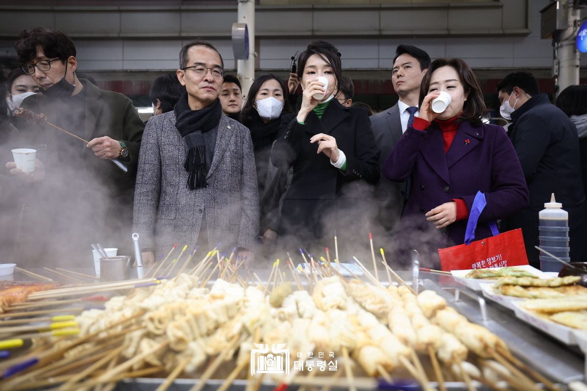 시장에서 어묵 먹는 사진을 유포하는 건 정치인이 선거를 앞두고 하는 전형적인 모습이다. 그래서 해당 뉴스에는 ‘당대표 출마하나’, ‘내년 총선에 대구에 출마하나’라는 댓글이 달렸다. 박지원 전 원장은 12일 CBS 라디오 ‘김현정의 뉴스쇼’에 출연해 “지금 보니까 영부인이 아니라 대통령 행세를 하는 것”이라고 꼬집었다.