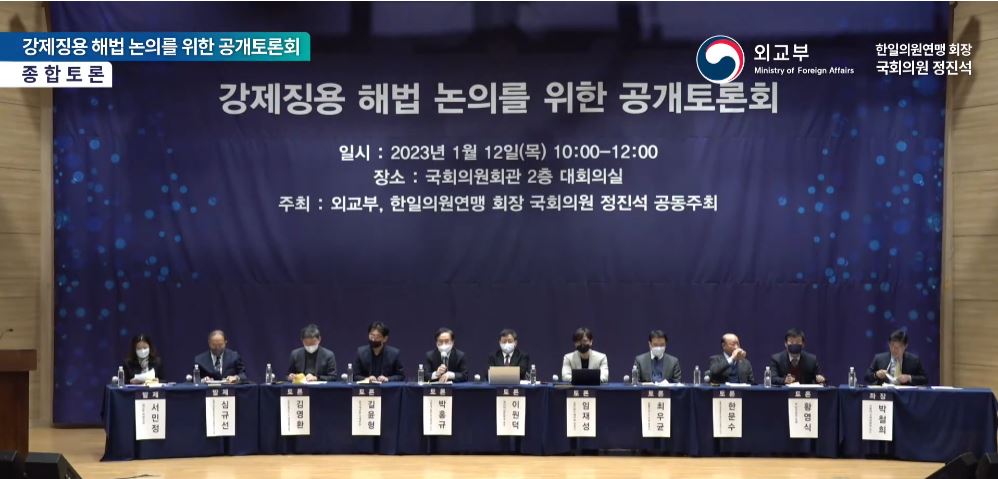 정부 측 인사들은 박 교수를 시작으로 토론회에서 일관되게 ‘제3자를 통한 변제’를 주장했다. 조선인 피해자들을 강제동원한 일본 전범기업 대신 한국 행정안전부 산하 일제강제동원피해자지원재단이 피해자들에게 배상금을 지급하겠다는 안이다.