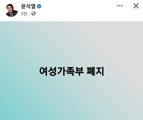 2022년 1월 7일, 당시 후보였던 윤석열 대통령은 자신의 페이스북에 이 일곱 글자를 대선 공약으로 내놓았다. 양성평등가족부로 개편하겠다는 공약에서 한발 더 나아가 ‘여가부 폐지’라는 입장을 낸 것이다.