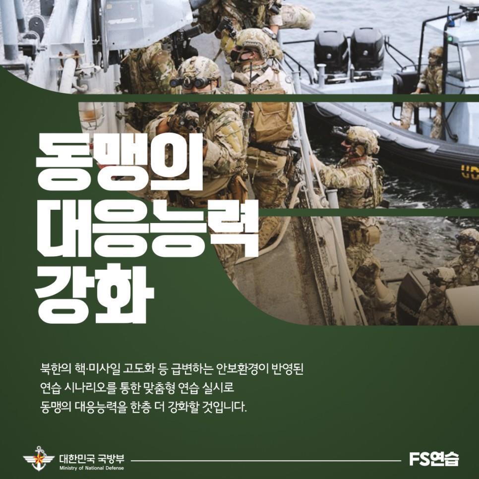 한미는 20여 개의 야외 실기동 훈련을 포함, 한반도 전면전을 상정한 국가 총력전 개념의 전구급 연합연습을 진행한다고 예고했다. 특히 사단급 연합상륙훈련인 쌍룡훈련, 이른바 ‘참수 작전’으로 불리는 연합특수작전훈련 ‘티크 나이프’ 등도 실시한다. 훈련 성격도 방어·격퇴 단계를 빼고 반격·안정화 작전을 시행해 침략 훈련, 점령훈련 성격을 노골적으로 드러냈다.