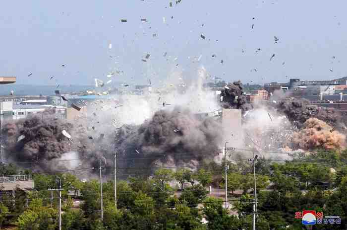 2020년 6월 16일 남북공동연락사무소가 폭파되는 모습.