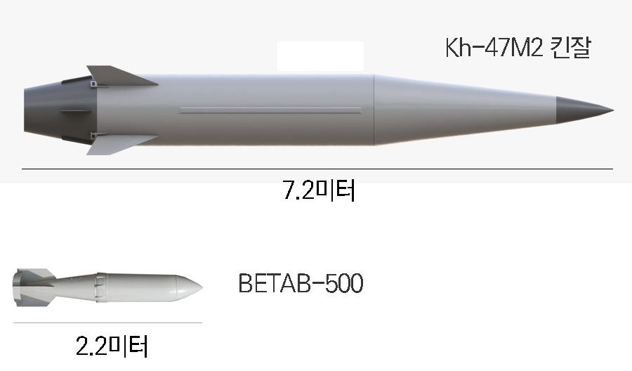 최근에도 언론은 우크라이나가 러시아의 극초음속 미사일 킨잘을 요격했다고 요란하게 보도하였지만 정작 우크라이나 키이우 시장이 공개한 미사일 잔해 사진을 보면 크기나 모양이 킨잘과 전혀 다른 무기임을 쉽게 알 수 있다. 일부 전문가들은 사진 속 무기가 콘크리트 관통 폭탄인 BETAB-500이라고 주장한다. 참고로 킨잘의 길이는 7미터가 넘고 직경도 0.9미터에 이르지만 BETAB-500은 길이 2.2미터, 직경 0.35미터로 절대로 둘을 헷갈릴 수 없다. 하지만 국내 언론은 우크라이나의 발표만 주로 보도하면서 우크라이나군이 극초음속 미사일을 요격하는 엄청난 전과를 올린 것처럼 소개하고 있다.