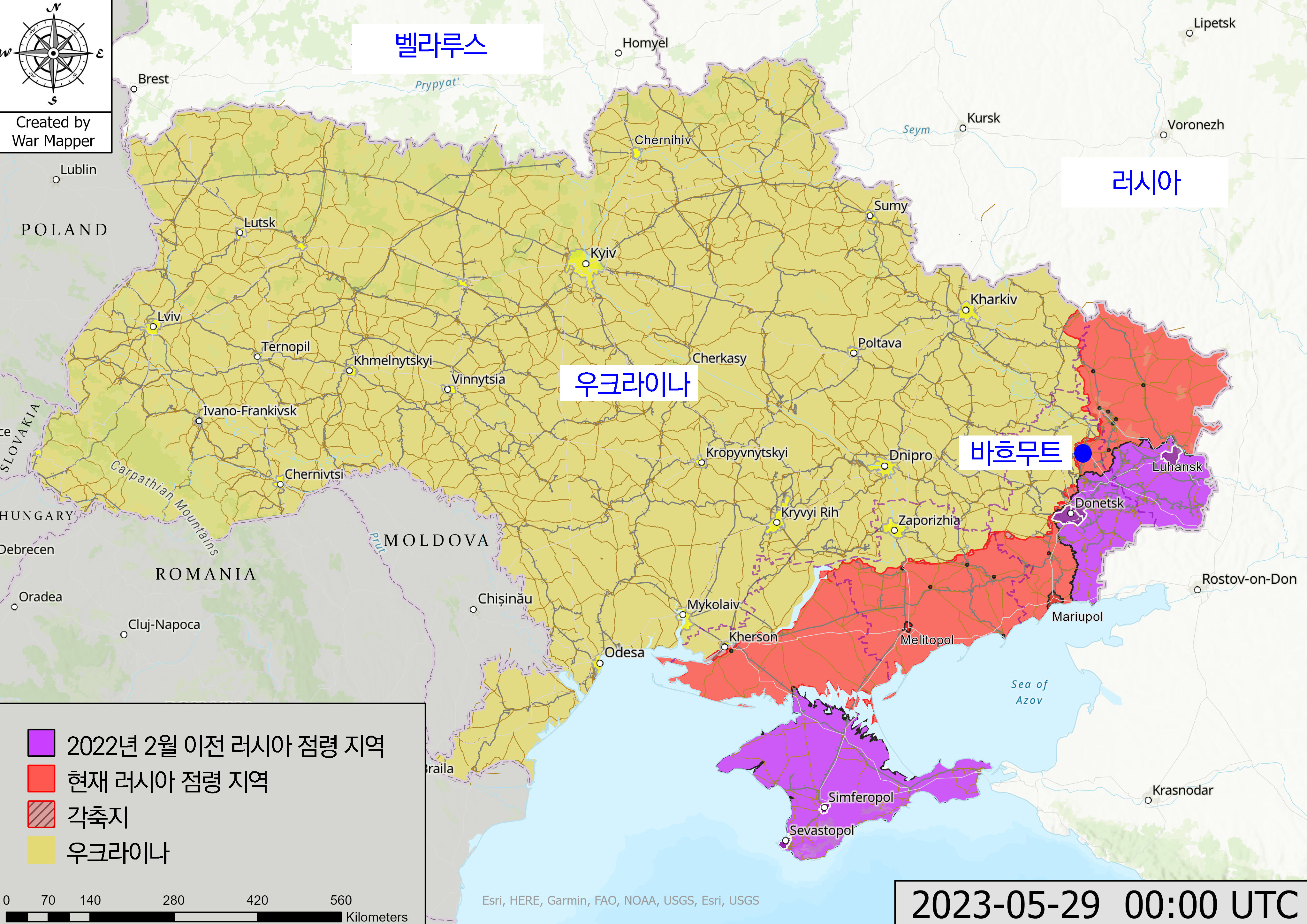 러시아 국방부는 5월 20일 성명을 발표해 “아르툐몹스크 해방을 완수했다”라고 밝혔다. 러시아 용병 기업 와그너(바그네르) 그룹의 수장 예브게니 프리고진도 “2023년 5월 20일 정오에 바흐무트 마지막 지역까지 완전히 점령했다”라고 발표했다.