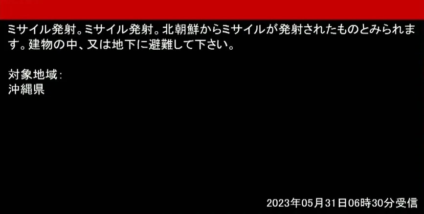 6시 30분: 일본, 오키나와현에 전국순시경보체계(J-경보) 발령