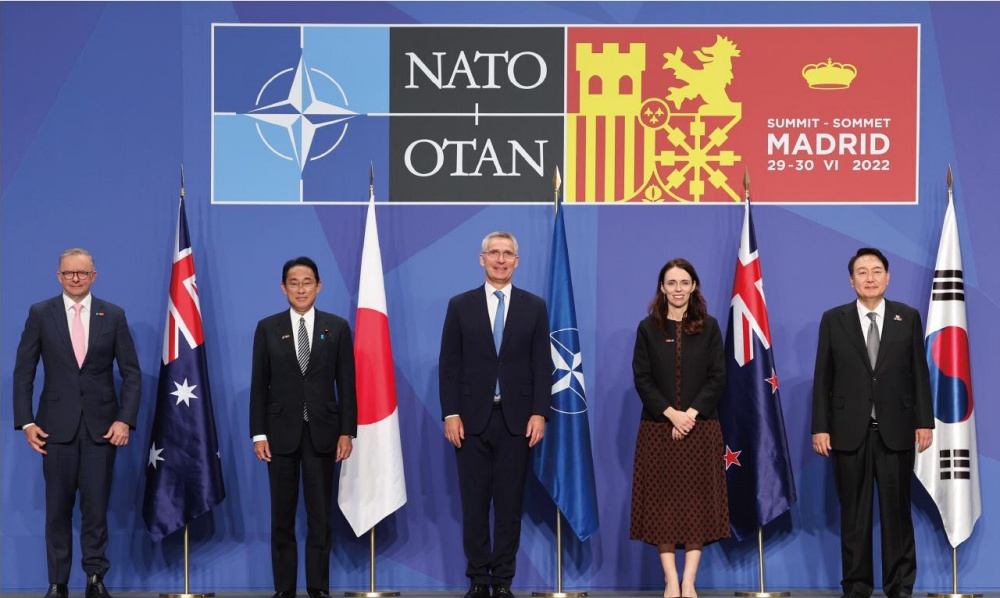 나토는 지난 2022년 6월 29일, 한국·일본·호주·뉴질랜드 4개국 정상을 초청한 나토 정상회의를 통해 북·중·러를 겨눈 새로운 전략개념을 채택했다. 당시 나토는 “지역을 넘어서는 도전과 공통의 안보 이익을 다루기 위해 인도·태평양의 새로운 (파트너국) 그리고 기존의 파트너국들과 대화와 협력을 강화”하겠다고 했다.