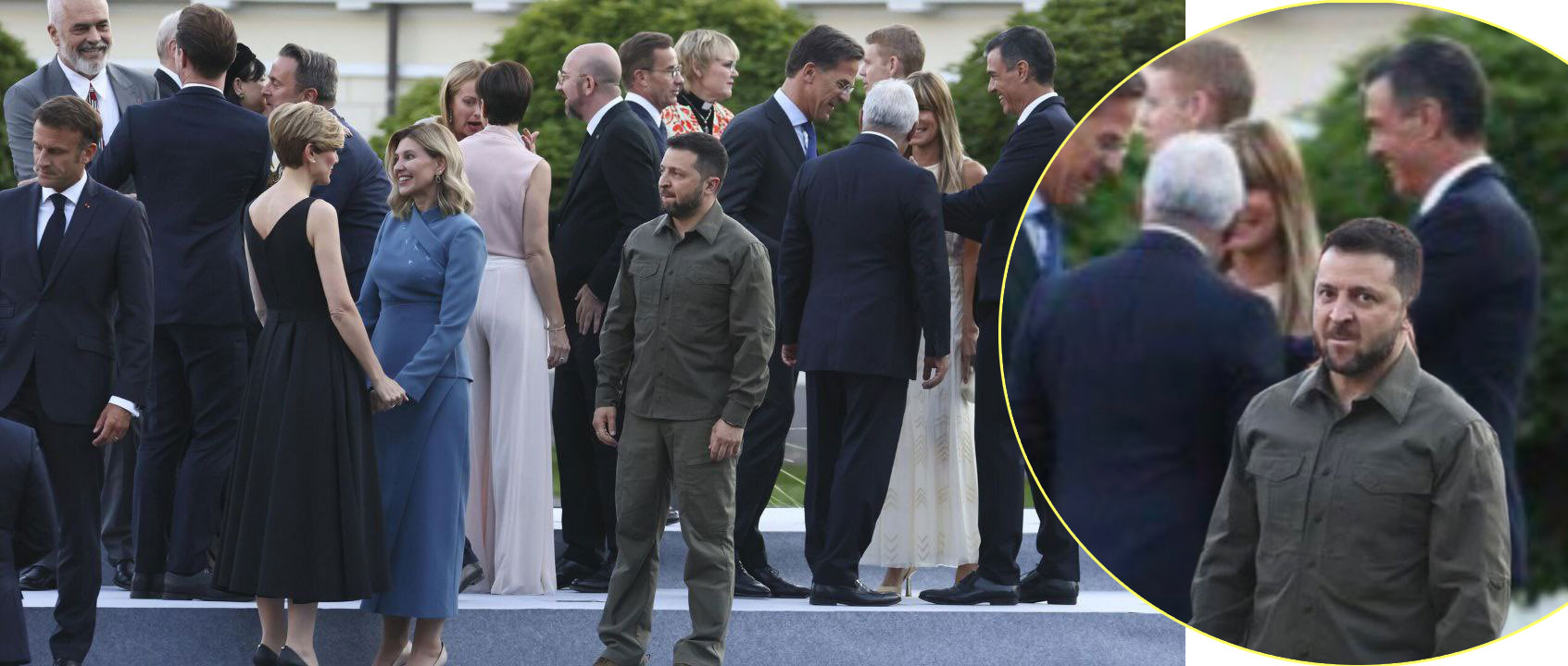 나토 회의가 끝나자 특이한 사진 한 장이 트위터에 돌았다. 볼로디미르 젤렌스키 우크라이나 대통령이 혼자 군복을 입은 채 화려한 정장을 입은 나토 정상 부부들 사이에서 따돌림을 당하는 듯한 사진이다. 사람들은 ‘올해의 사진’을 건졌다며 조롱했다. 나토 회의에서는 대체 무슨 일이 있었던 것일까?