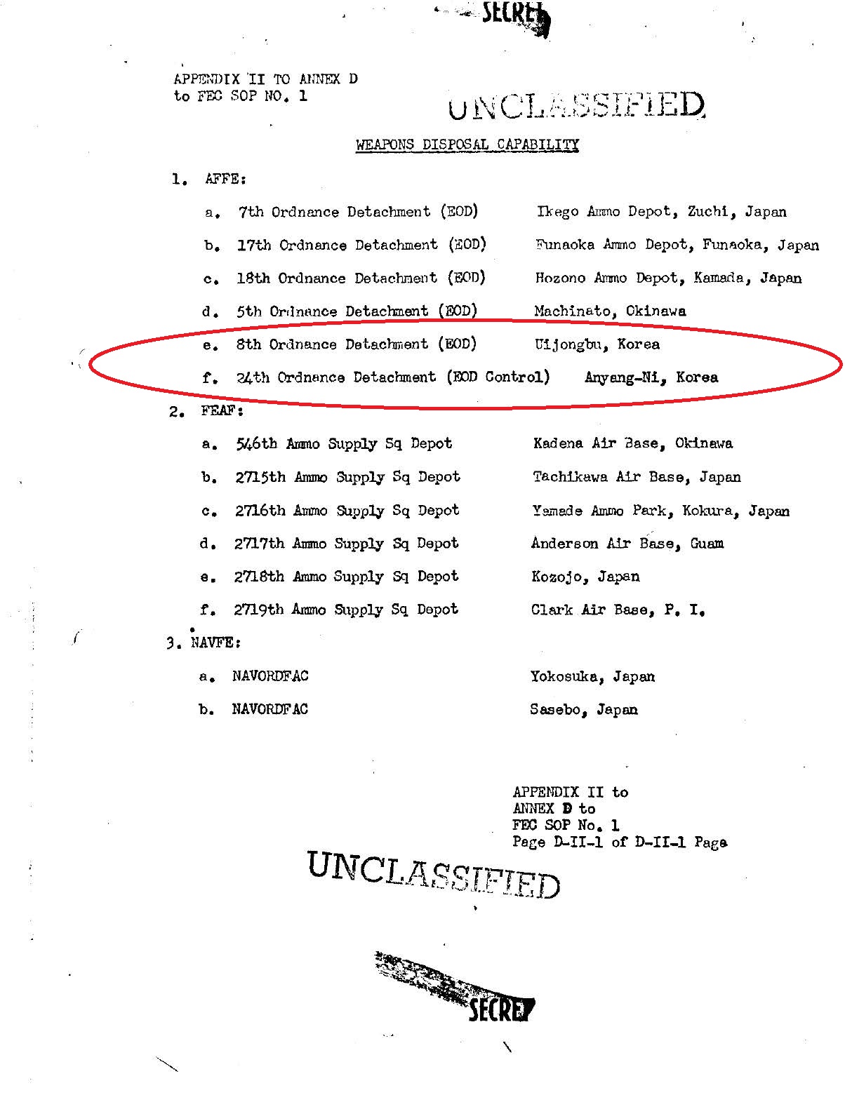 또 1956년 1월 6일 국무부-국방부 합동회의에서 맥스웰 테일러 육군참모총장은 “남한에 핵무기를 배치할 수도 있다”라고 발언했으며 같은 달 30일 라이먼 렘니처 유엔군 사령관은 “남북 군사력 균형을 맞추기 위해 주한미군이 핵무기를 갖는 게 매우 바람직하다”라고 미 육군부에 전문을 보냈다. 같은 해 9월 아서 래드포드 미 합참의장이 찰스 윌슨 미 국방부 장관에게 “핵무장이 지체 없이 이루어져야” 한다고 극비 전문을 보냈다. 이에 따라 1956년 11월 1일 작성된 ‘극동군사령부 운용절차’에는 의정부와 안양 2곳이 핵무기 예비기지로 지정되었고 일본에도 12곳이 지정되었다.