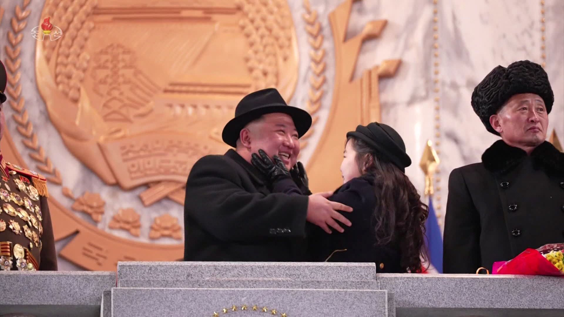 또 2월 8일 열병식 때는 북한 군인과 시민들 수십만 명이 하늘과 땅을 뒤흔들 정도의 큰 함성으로 김정은 국무위원장을 향해 “만세”를 외치고 있는데 김정은 국무위원장의 자제가 그 앞에서 국가 최고지도자인 김정은 국무위원장의 양쪽 뺨을 손으로 자연스럽게, 미소를 띤 채 여유롭게 어루만졌다. 아마도 ‘수고했어요’라고 하는 것처럼 보이던데 김정은 국무위원장은 그 손길을 느끼며 밝게 웃었다.