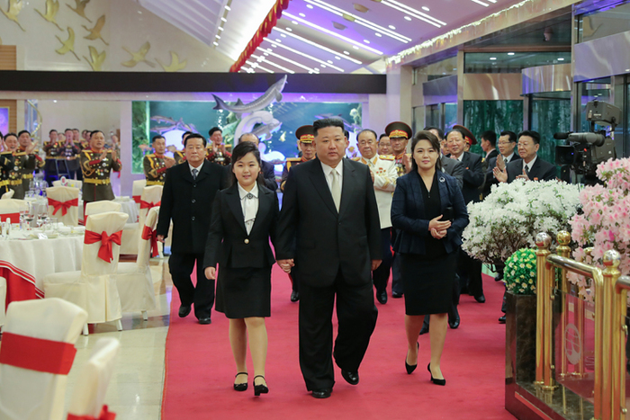 열병식 전날 있었던 기념 연회 사진도 인상적이다. 김정은 국무위원장의 자제가 식탁 중앙에 앉고 김정은 국무위원장과 리설주 여사가 양옆에 앉아있는 구도였다.