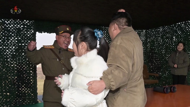 작년 11월 18일 미국에서 ‘괴물 미사일’이라 부르던 대륙간 탄도미사일 관련 사진들에서도 이런 배짱을 엿볼 수 있다. 일반인은 평생 보기 힘든 거대한 미사일 앞에서도 전혀 주눅이 들지 않고 차분하고 자연스러운 모습을 보였으며, 대륙간 탄도미사일이 지축을 울리며 하늘로 올라가는데 놀라거나 겁을 먹지도 않고 태연하고 조용히 바라보았다. 이는 사실 웬만한 어른들도 보이기 힘든 모습이었다. 김여정 노동당 부부장은 미사일 발사가 성공했을 때 감정이 폭발한 듯 껑충 뛰면서 감격의 눈물을 흘리고 환호하며 손뼉을 치는 등 흥분한 모습이었는데 김정은 국무위원장의 자제는 흐뭇한 표정으로 만족해하며 여유롭게 손뼉을 쳤다.