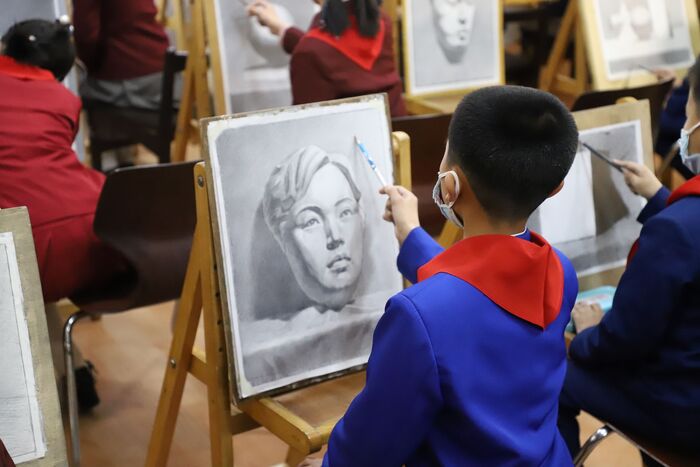 ▲ 만경대학생소년궁전에서 학생이 그림을 그리고 있다. [사진 출처: 주북 러시아 대사관]