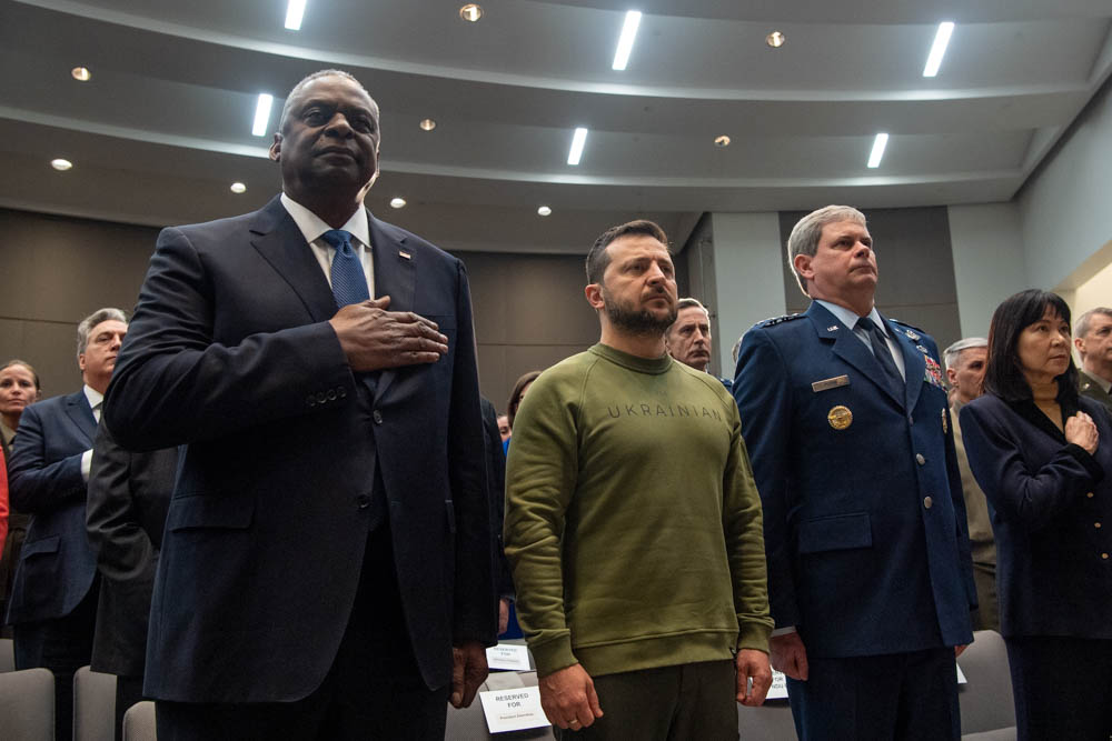 2023년 11월 11일 워싱턴 D.C.를 방문한 젤렌스키 대통령(가운데)과 오스틴 장관(왼쪽). [출처: 미 국방부]