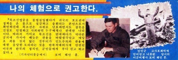 또 홀은 북한 언론과 대담을 통해 발표한 「나의 체험으로 권고한다」라는 글에서는 다음과 같이 주장했다.
