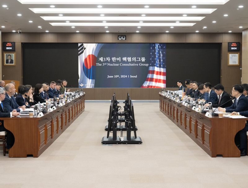 조창래 한국 국방정책실장과 비핀 나랑 미국 국방부 우주정책 차관보 대행은 지난달 10일 서울 용산 국방부 청사에서 제3차 핵협의그룹 회의를 열었다. 이들은 회의에서 북한의 핵공격에 한국 첨단 재래식 전력과 미국 핵전력을 통합해 대응하는 지침을 담은 ‘공동지침 문서’를 검토했다.